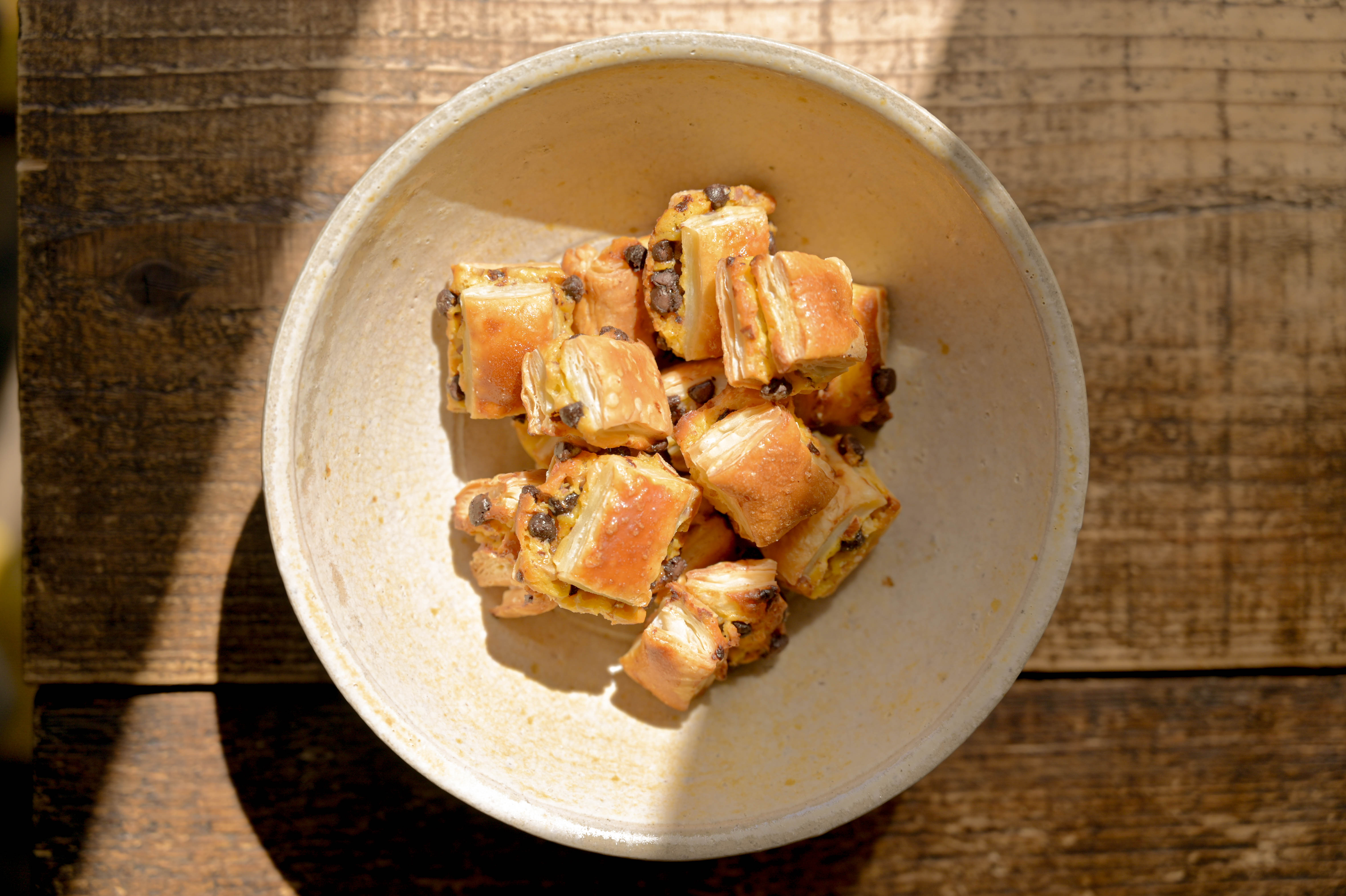 小さなパイは、食べ始めるとあっというまに残り一つになってしまう美味しさ。